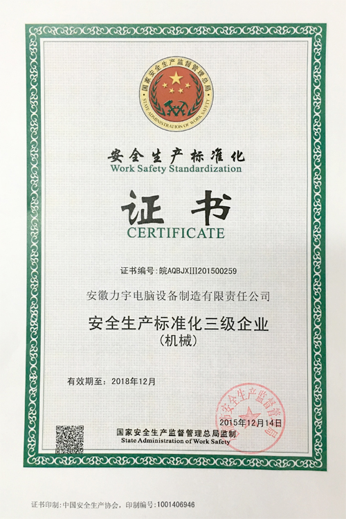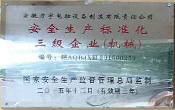 我司于2015年底通過了安全生產(chǎn)標準化三級企業(yè)的復核
